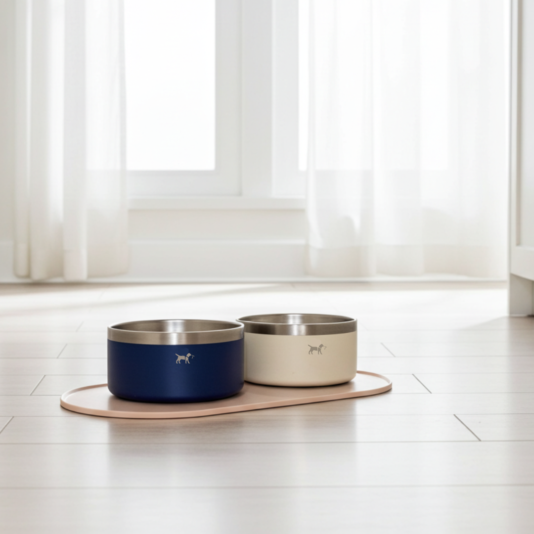 Su textura antideslizante mantiene los cuencos fijos y su borde ligeramente elevado evita derrames de agua o restos de comida, protegiendo el suelo. Ideal para usar con nuestros cuencos de acero inoxidable Nordic.