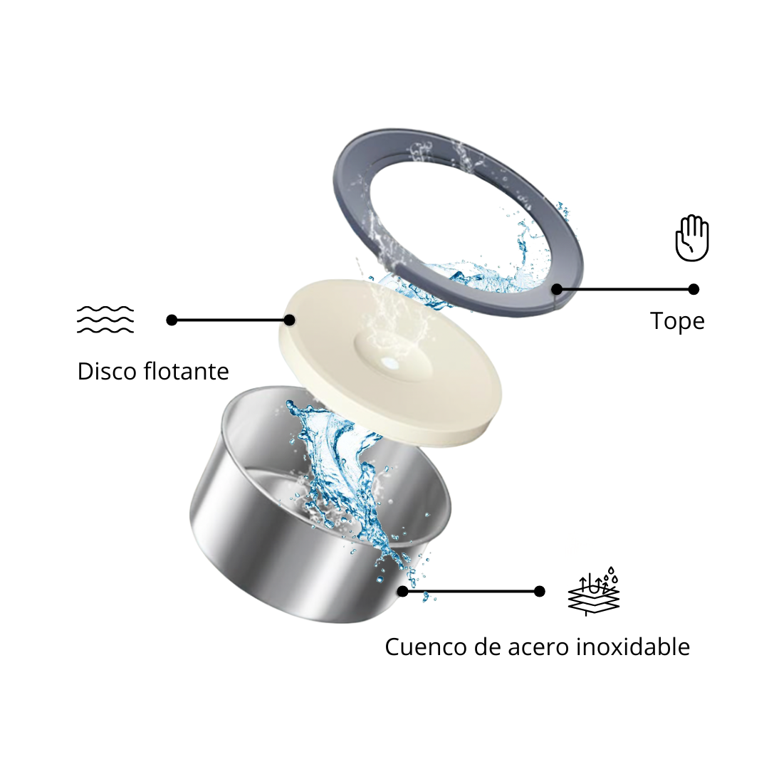 • Anti-splash and anti-drip design: raised edges + floating plate that reduces the speed and force of the water when drinking.