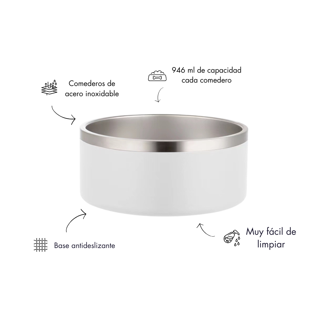 🧼 Fácil de limpiar: Cuencos de acero inoxidable. Se recomienda lavar a mano. Recuerda lavar los cuencos después de cada comida